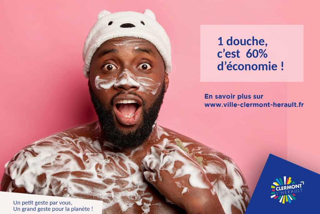 Prendre une douche permet d’économiser 60% d’eau par rapport à un bain. Soit une économie d’eau d’environ 100 litres par jour et par personne. Pour une ville comme Clermont, ce serait 350 400 m3 d’eau économisés, soit 120 piscines olympiques !